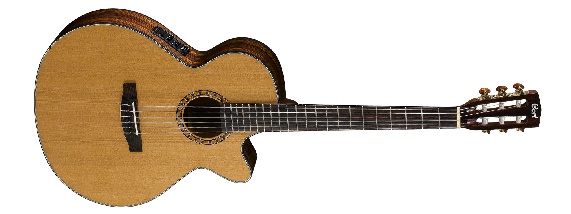The Classic Series features two distinctive types of models: the traditional Spanish-style nylon-string AC models and hybrid nylon-string CEC models that borrow from steel-string cutaway acoustic-electrics with cutaways, narrower nut width, and Fishman electronics. CEC7 features slim body with cutaway, 45mm nut width and electronics for steel-string players who love the nylon-string sound.